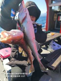 대구지깅/라바 다녀왔슈 ~오늘은 승선하신분 70% 대구낚시는 처음이시라고.....음....고난이 예상됩니다.거기에 10시경부터 태풍급 똥바람이 ...ㅠㅠ시범을 보이면 어김없이 나오는걸 보면바닦 1m 이내에 대구가 있는디...끄집어 내지를 못하고....ㅠㅠ중대구는 마릿수가 좀 나왔는데돼지 왕대구 덩어리는 3수....^^:; 부진합니다.오늘 출조하신분들가시는 곳까지 안전하게 가시고 수고하셨습니다.덩어리들이 들어와 자리를 잡아 좀 나오네요돼지 왕대구 미루지 마시고 나올때 잡으러들 오시기 바랍니다.*** 속초 보스호 예약 안내 *** 예약문의 : 010-6397-5678 오시는길 : 강원도 속초시 대포항희망길 20 (어구보수 보수장 11번 보스호)홈페이지 : https://bossho.sunsang24.com/